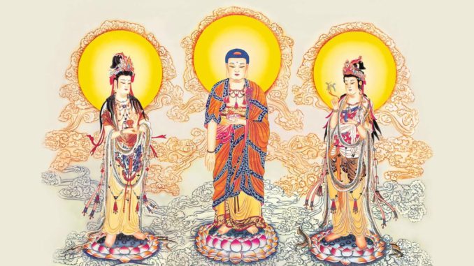 隋唐時期是中國佛教發展的鼎盛時期,尤其是淨土宗的發展,出現了「家家阿彌陀,戶戶觀世音」的信仰盛況。釋尊在《觀無量壽經》云:「若念佛者,當知此人,則是人中芬陀利華;觀世音菩薩、大勢至菩薩,為其勝友,當坐道場,生諸佛家。」念誦「南無阿彌陀佛」是念佛法門中最普遍的,是《無量壽經》與《阿彌陀經》所講的持名念佛。一般人對彌陀淨土法門的了解,是想起念佛就想到死亡和往生,而不知道經中所說念佛在現世的利益和在現世的積極意義。念佛人應有責任告訴大眾念佛在今生亦有所得益,莊嚴人間淨土,在人世間推廣念佛法門。