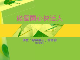 講座重溫 做個開心快活人-佛教慈無量心的修習 2008 年 4 月 20 日 陳家寶 做過開心快活人,助你融入快樂與喜悅的生活。 佛教教導我們培養慈悲無限的心境,對自己和他人保持關懷和愛心。我們將學習如何以慈悲心態看待世界,以及如何將慈悲轉化為實際行動,改善我們自己和他人的生活。